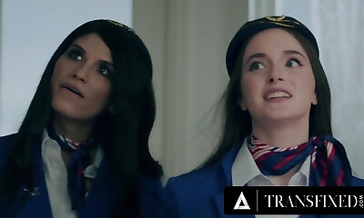 可爱的丰满的青少年空姐享有奇闻趣事性别与她迷人的黑发人妖同事
